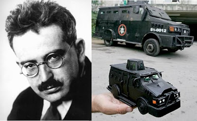 O brinquedo Roma Tático Blindado (réplica perfeita dos “caveirões” do BOPE no Rio de Janeiro) escandaliza educadores e psicólogos que o acusam de induzir as crianças à violência. Mas se o filósofo alemão Walter Benjamin estiver correto, a imitação é a grande característica do jogo infantil: reproduzir o mundo adulto no espaço lúdico para subvertê-lo. O problema não só do “caveirão”, mas de todos os brinquedos industrializados, é que esse impulso espontâneo é desviado do jogo para o brinquedo-réplica. O problema não está na violência, mas para onde o impulso pela imitação da violência é conduzido.
