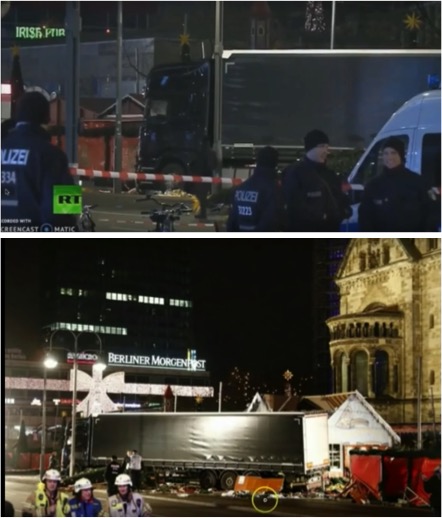 Observando fotografias e vídeos do mercado natalino de Berlim na noite do massacre e no dia seguinte há anomalias que acabam formando um conjunto de peças soltas, vital para o item (a). Nas fotos posteriores parece que o rastro de destruição é muito maior, como que para ampliar ainda mais a cena de destruição.
