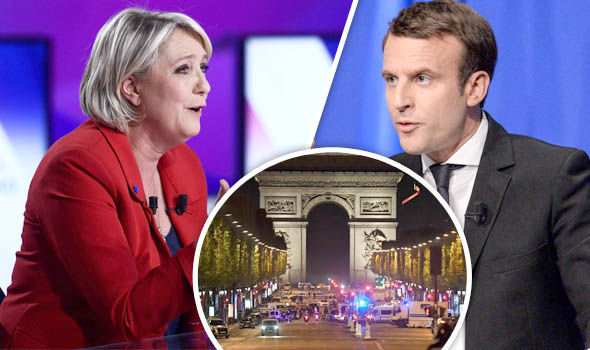 Enquanto era transmitido pela TV o último debate entre os candidatos à presidência, às 21 horas, em plena Champs Élysées, um Audi 80 prata parou ao lado de uma van da polícia estacionada em frente à estação de metrô Franklin Roosevelt. Um atirador (ou dois em outras versões) saiu do carro e abril fogo contra os policiais.