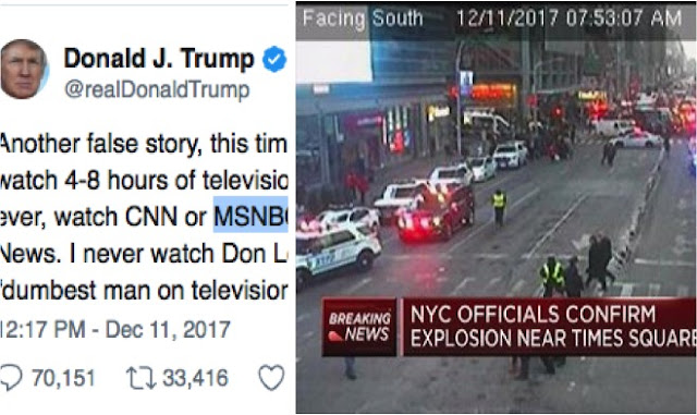 Até aqui nenhuma novidade. Principalmente com a notícia de uma explosão de uma bomba caseira atada ao corpo de um homem (um suspeito chamado Akhayed Ullah, hindu de 27 anos que vive há sete anos na área do Brooklyn) em um terminal de ônibus e metrô perto da Times Square, Nova York, na última segunda-feira.